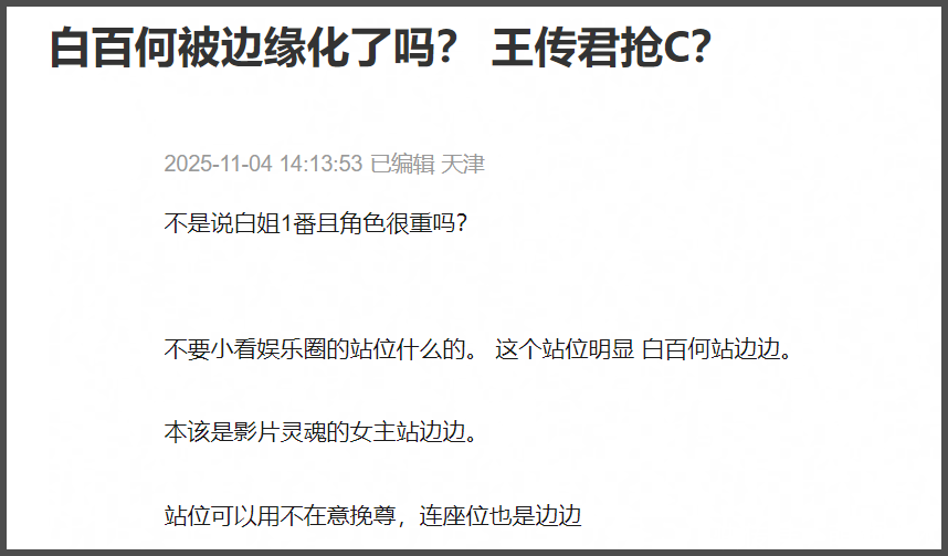 且不提奖项归属,倘若真如白百何好友所说,《春树》靠着白百何拉投资,白百何还是全片大女主,至少在海报和公开活动上,就应该给予白百何女主角待遇,尊重她的心血付出。