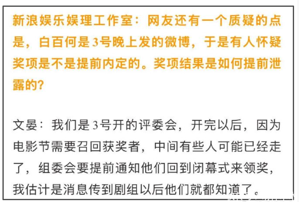 11񀙓日,白百何得知自己没拿奖,确认不出席闭幕式和颁奖礼,当晚就发文内涵;